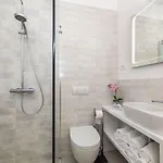 Ванная комната оборудована душем, умывальником и душевой кабиной.